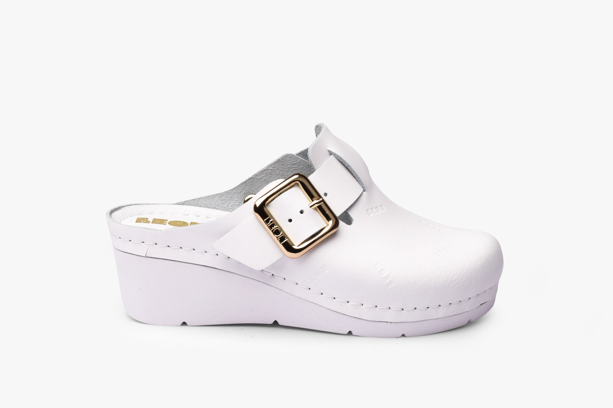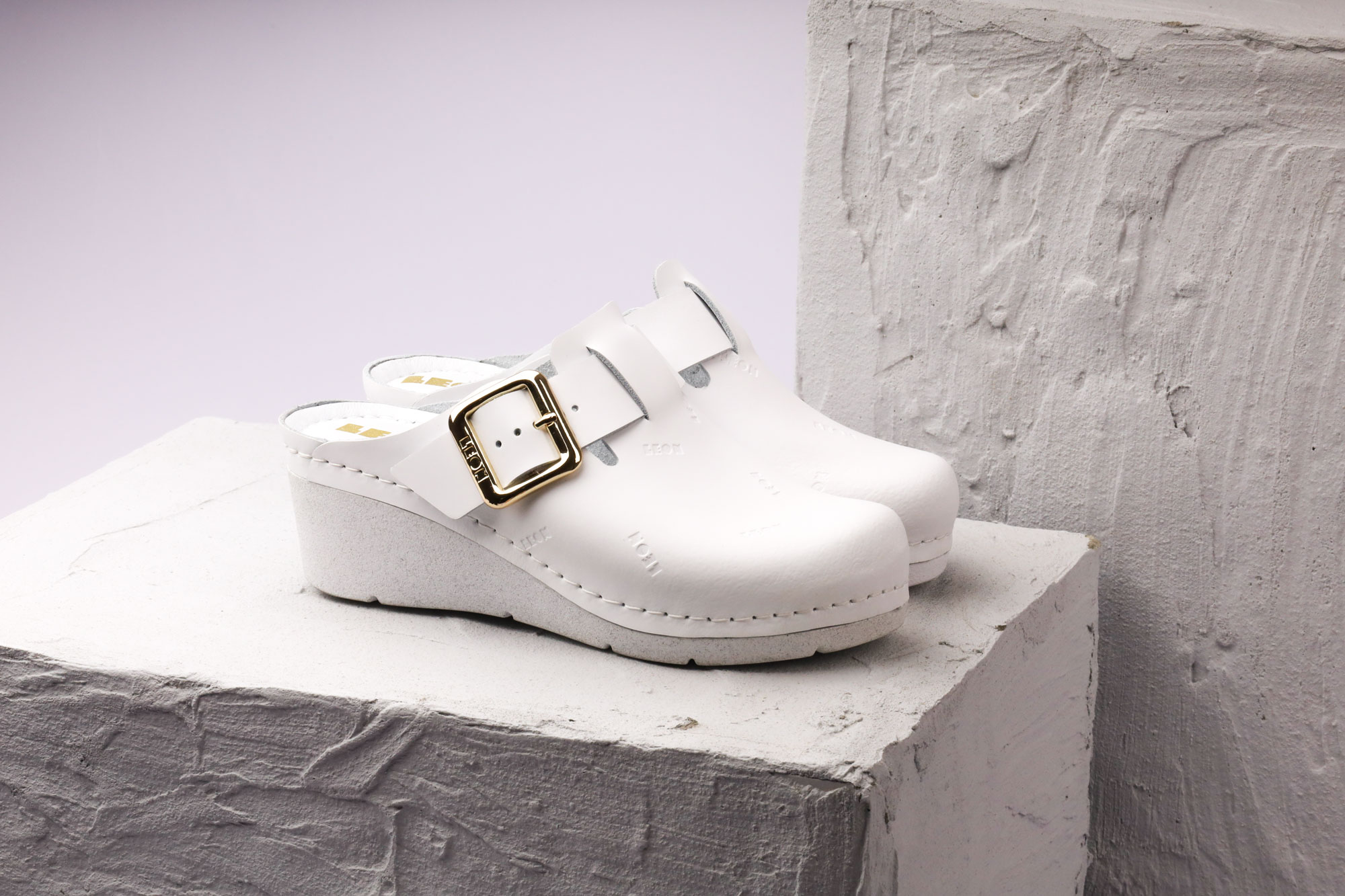 Ženska papuča izrađena od prirodne kože i kožnom tabanicom koja sadrži masažni gel. Đon je naparvljen od poliuretanske mase.