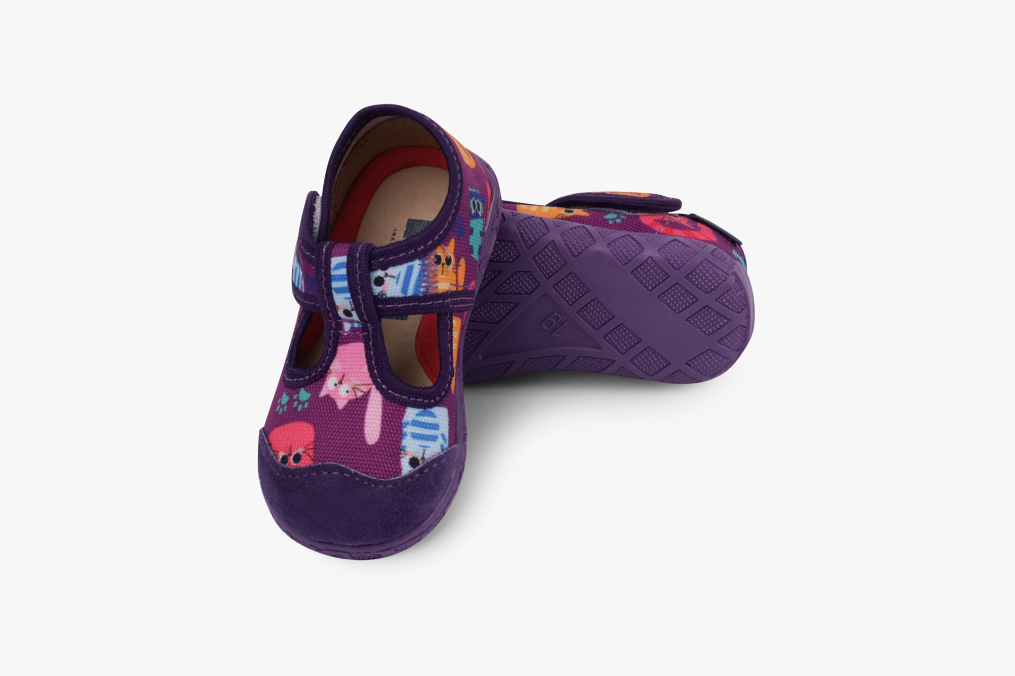 Dečija anatomska patofna sa posebno oblikovanim gazištem. Izrađena od tekstila i prirodne kože.