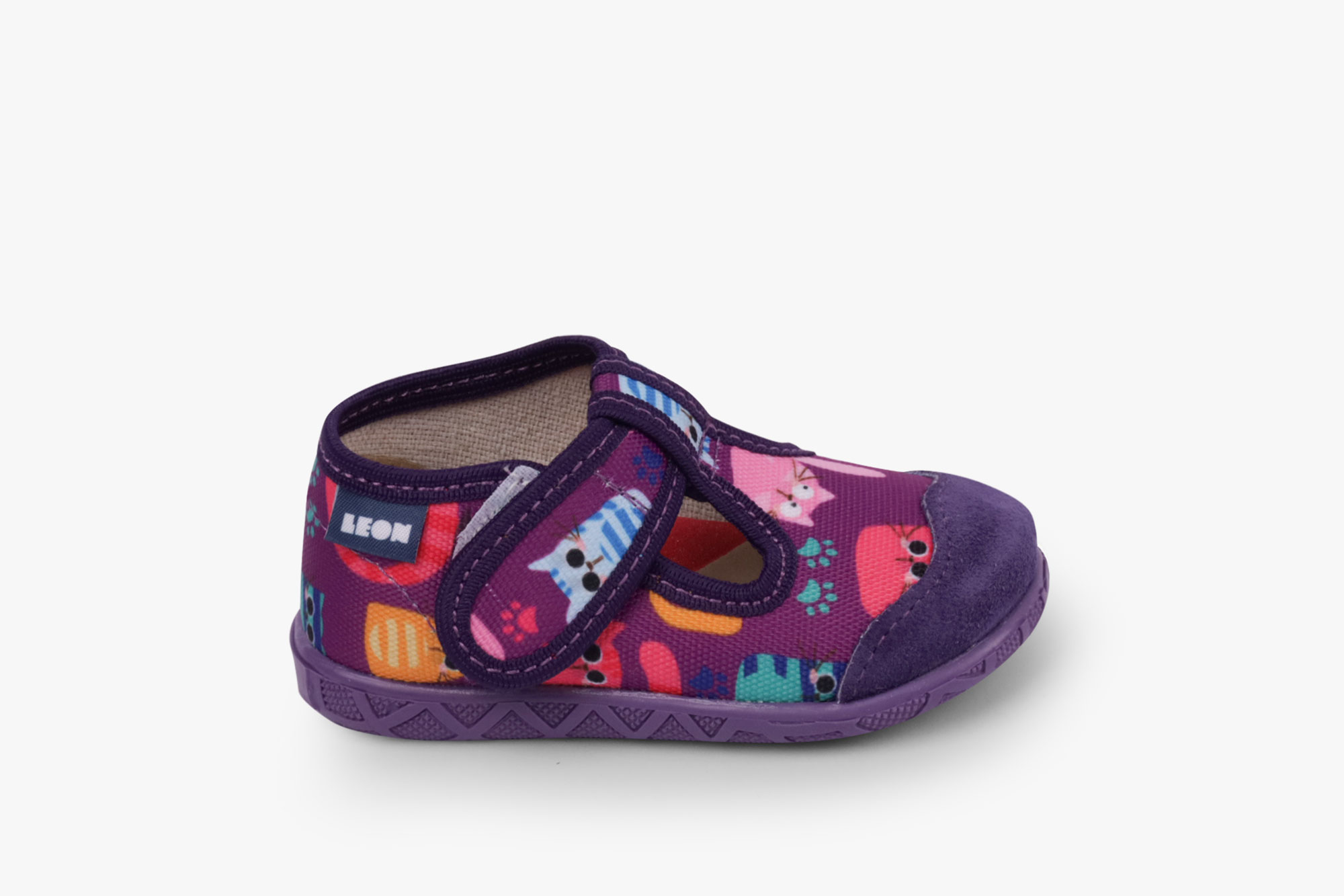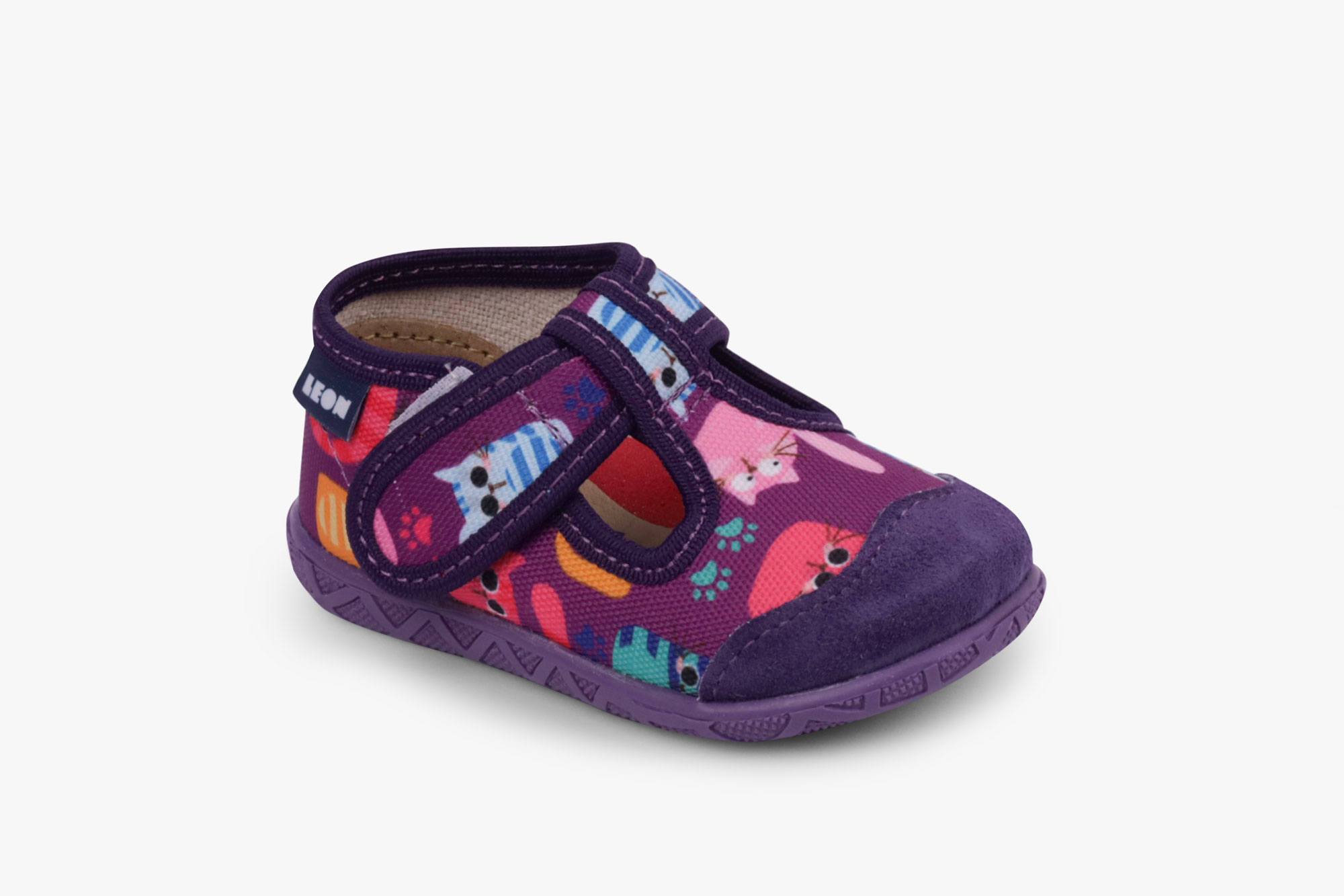 Dečija anatomska patofna sa posebno oblikovanim gazištem. Izrađena od tekstila i prirodne kože.