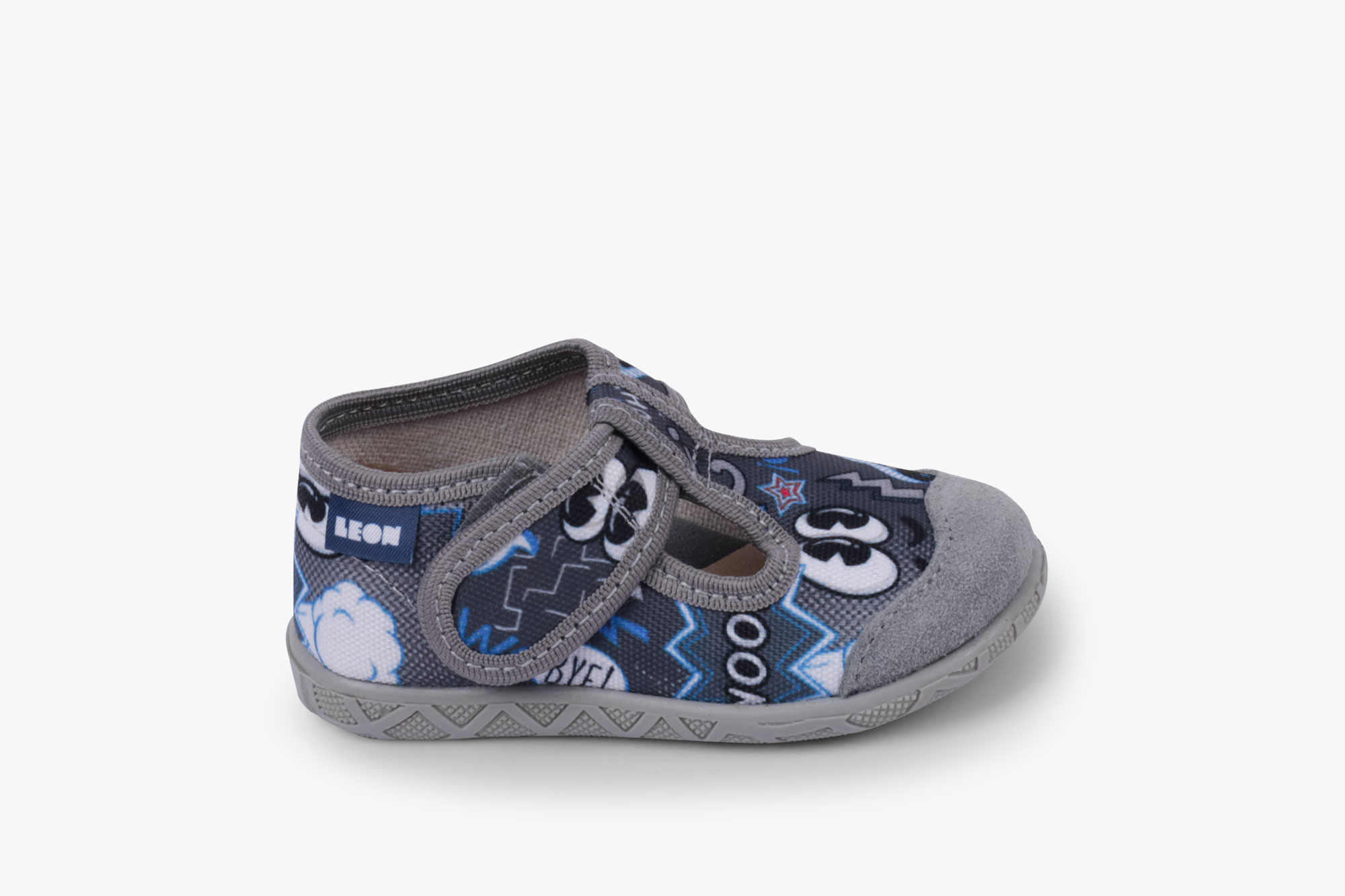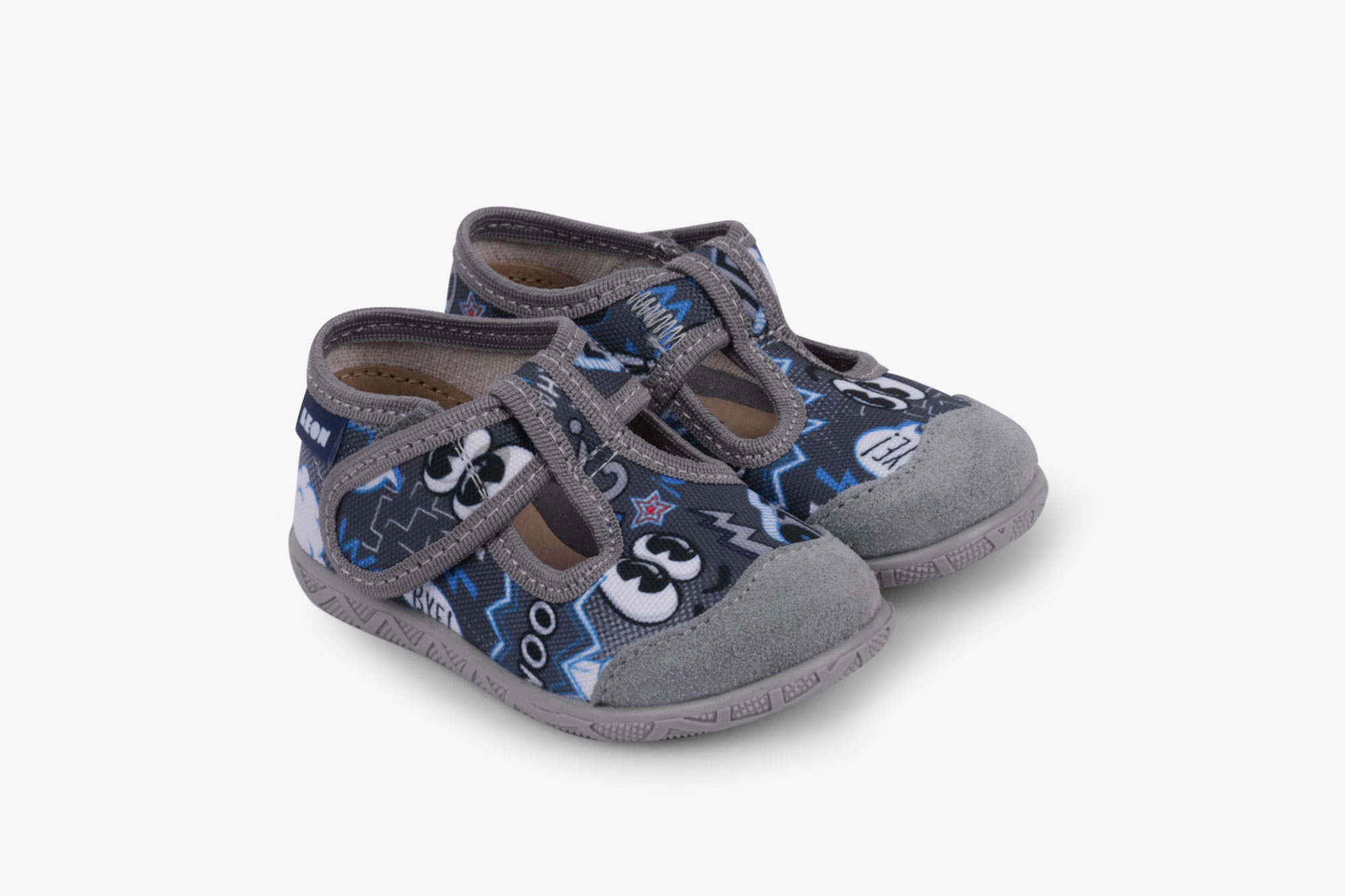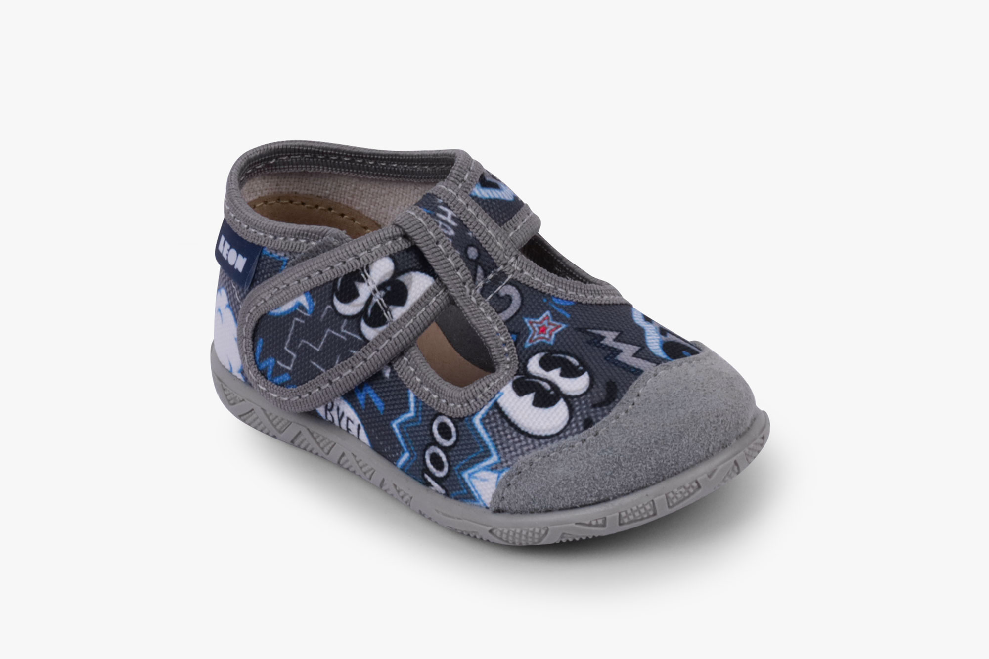 Dečija anatomska patofna sa posebno oblikovanim gazištem. Izrađena od tekstila i prirodne kože.