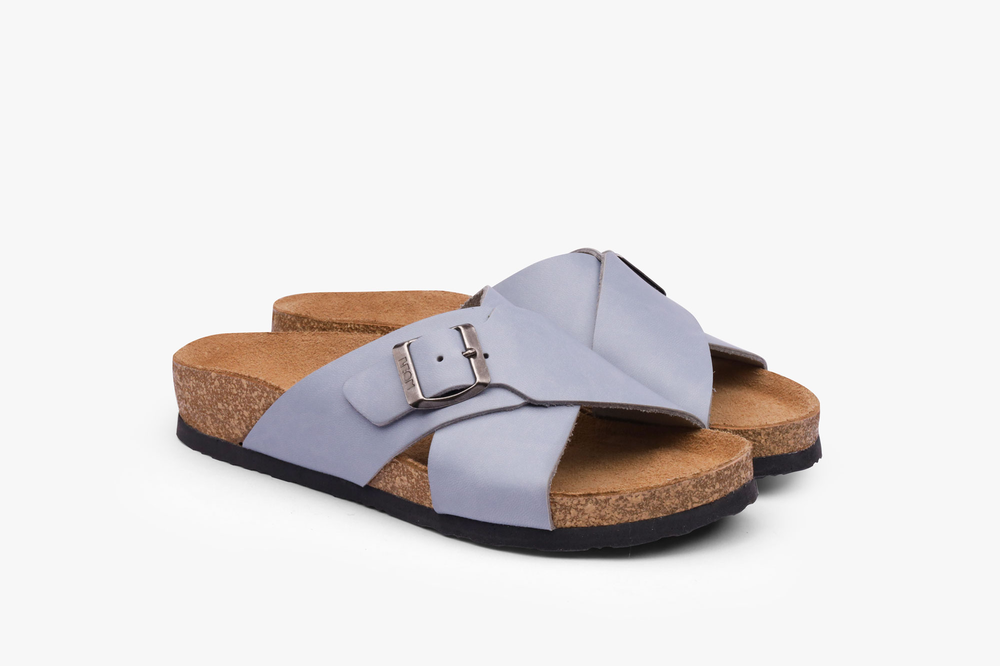 Ženska anatomska papuča sa posebno oblikovanim gazištem, masažnim gelom. Izrađena od prirodnog materijala – koža, i poliuretanskim đonom.