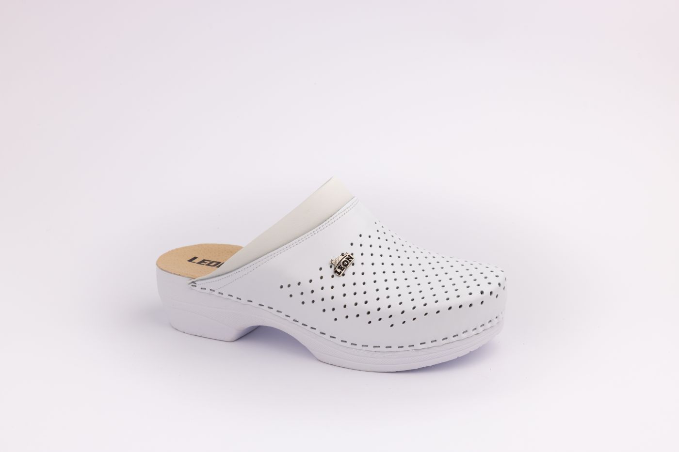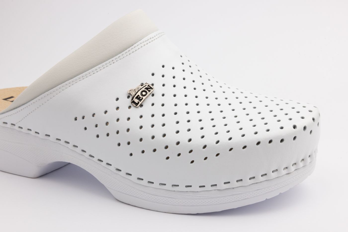 Klompa izrađena od prirodne kože sa ventilirajućim rupicama i kožnom tabanicom. Đon je naparvljen od poliuretanske mase