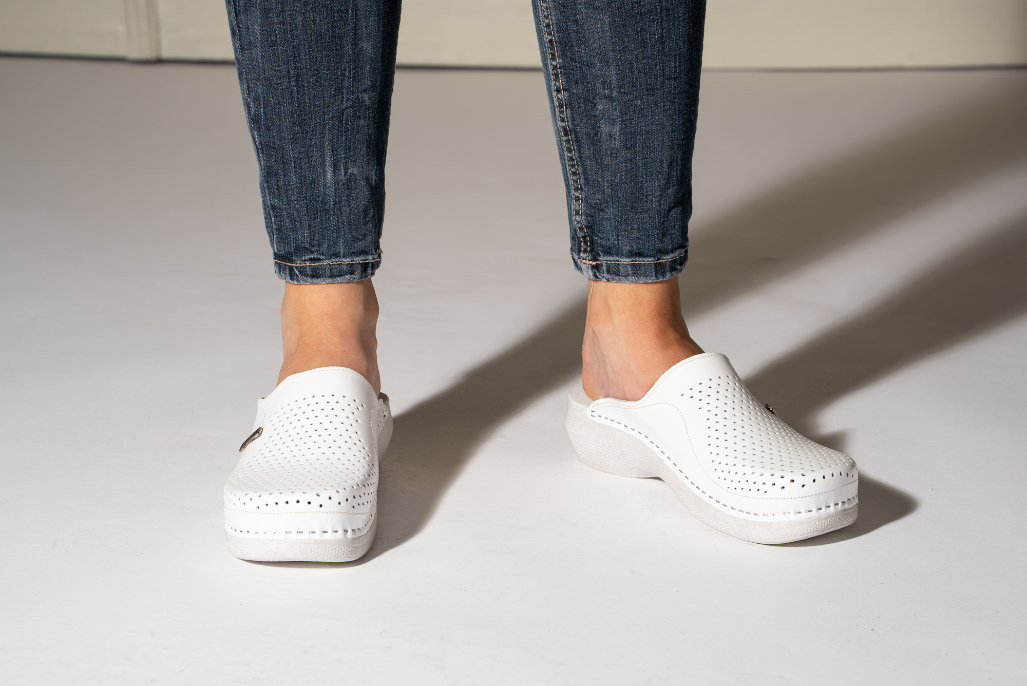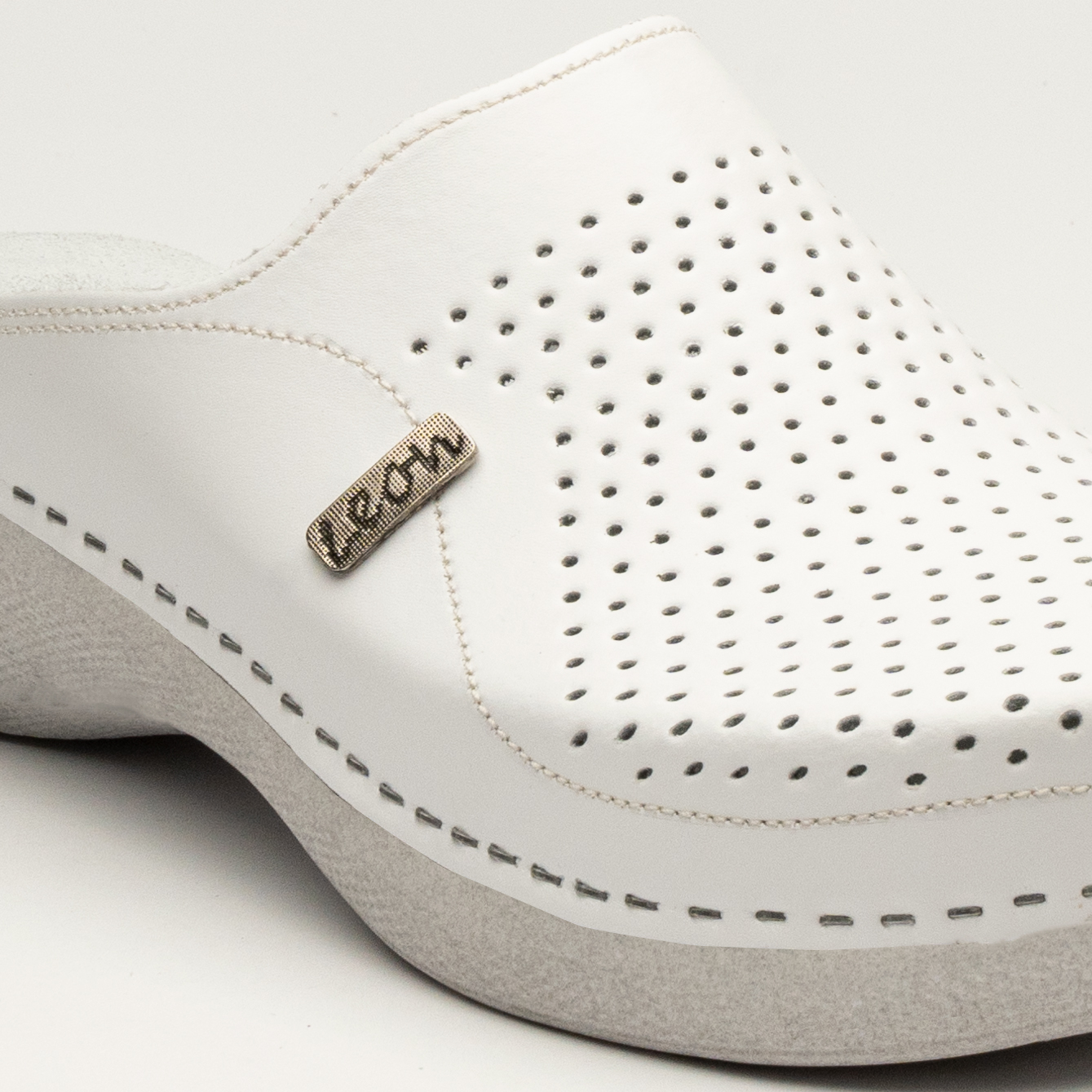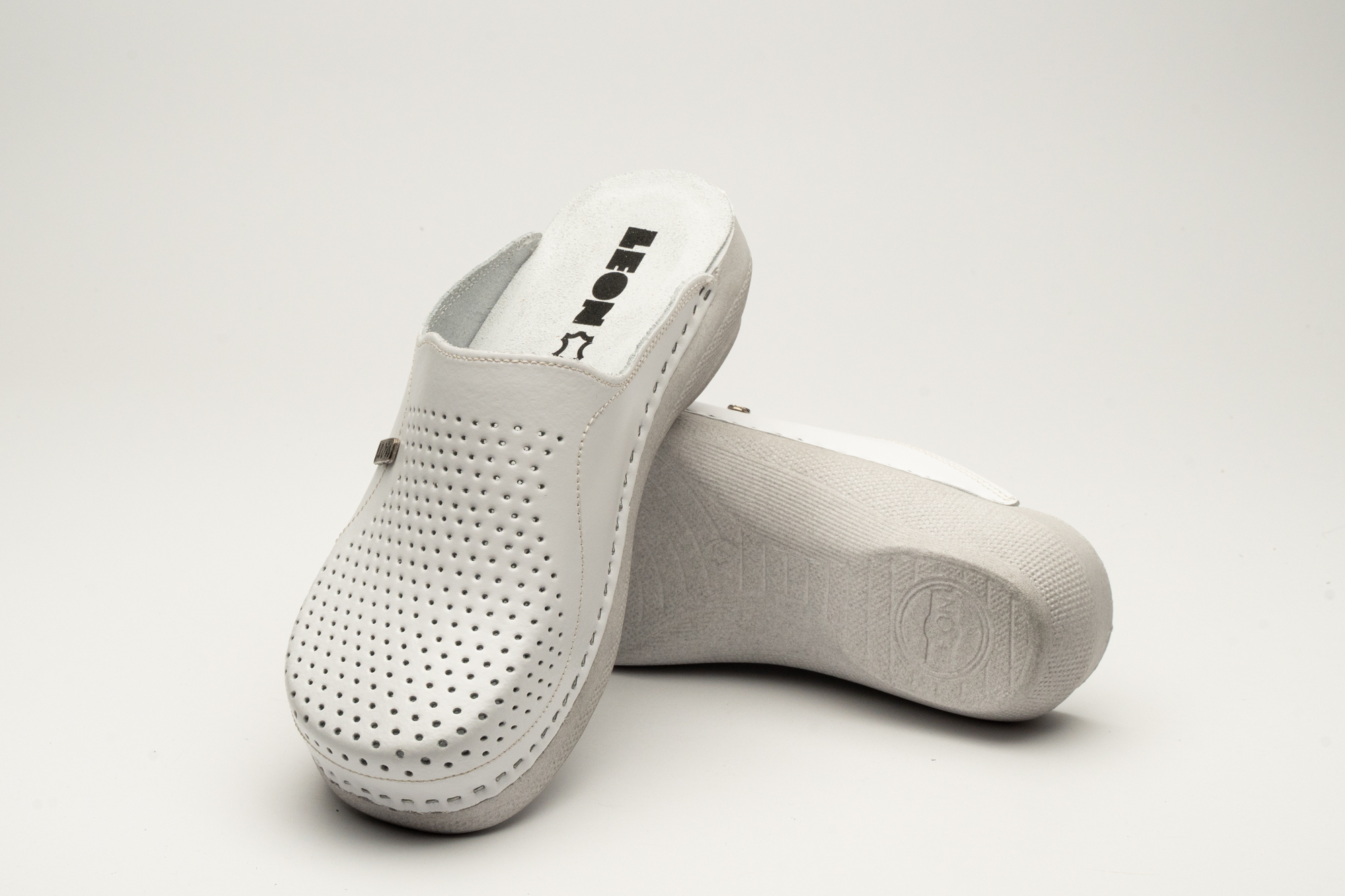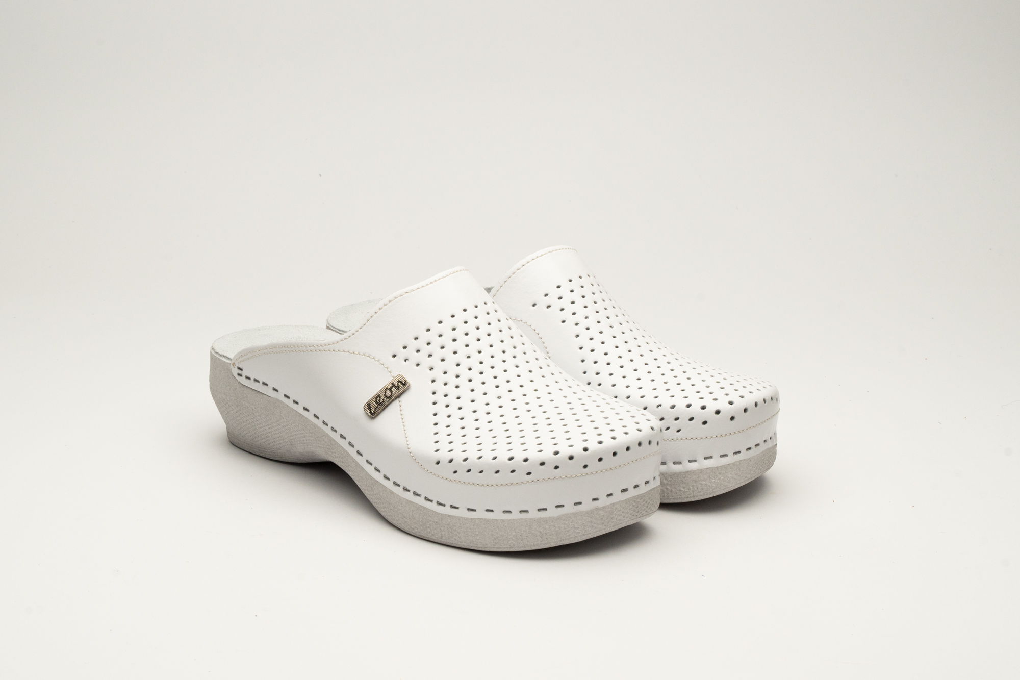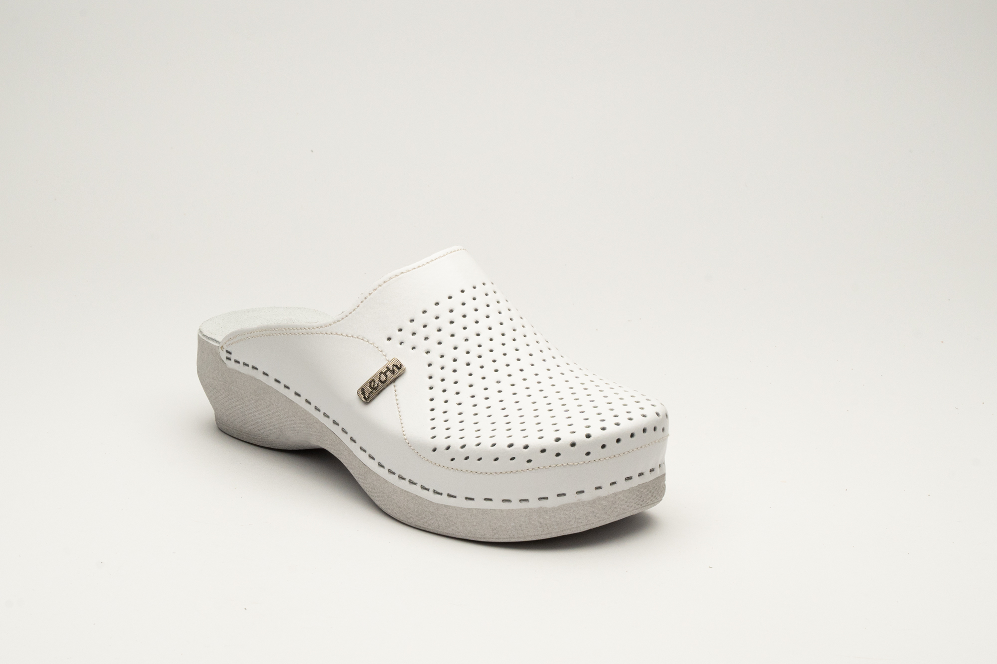 Klompa izrađena od prirodne kože sa ventilirajućim rupicama i kožnom tabanicom. Đon je naparvljen od poliuretanske mase