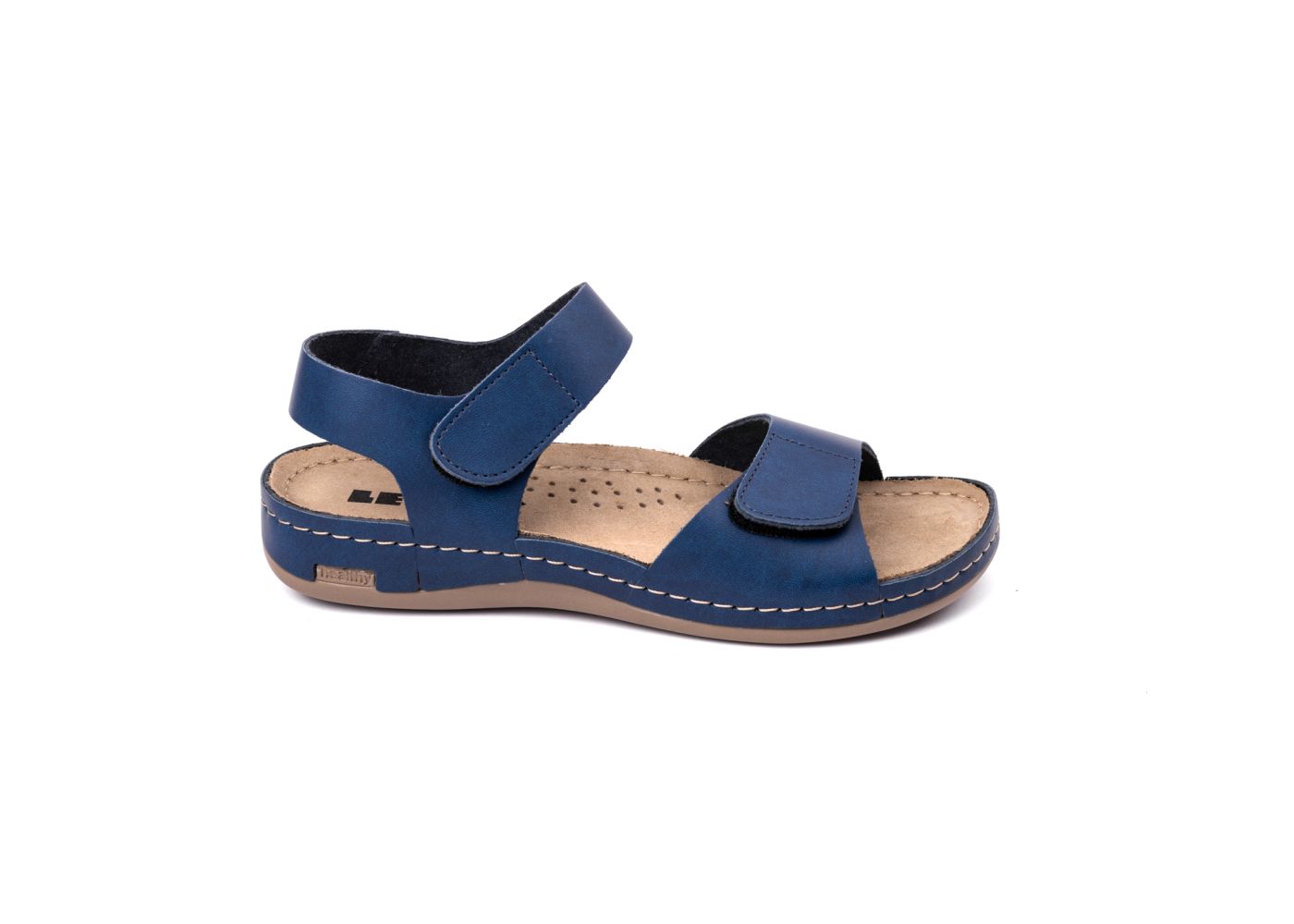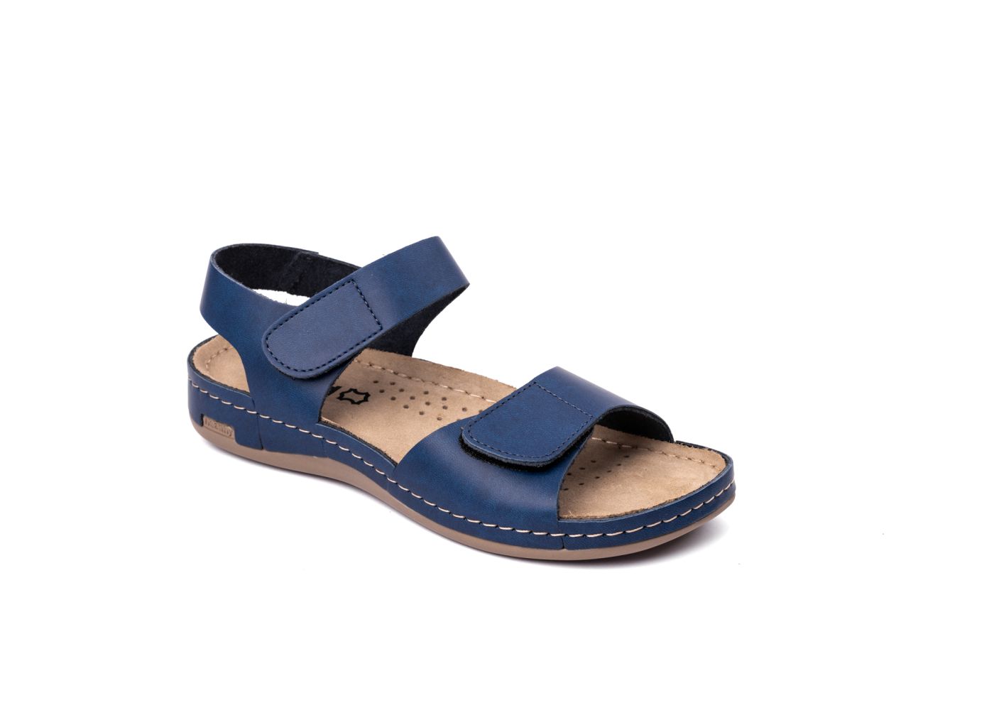 Ženska papuča izrađena od prirodne kože i kožnom tabanicom koja sadrži masažni gel. Đon je napravljen od poliuretanske mase koji sadrži anti – slip čep koji sprečava klizanje. Gornjište sadrži čičak traku za podešavanje.